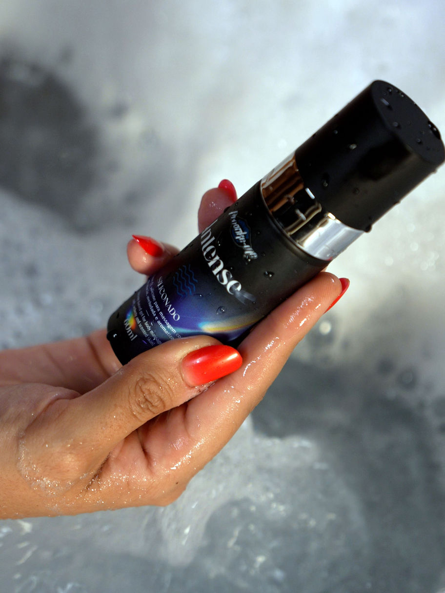 Ele oferece uma sensação sedosa e duradoura, tornando a relação mais confortável e prazerosa. Além de suas propriedades de lubrificação, o Intense é um produto versátil que pode ser utilizado em outras aplicações, como creme para as mãos, reparador de pontas para os cabelo.Também é indicado para a prática de sexo anal, especialmente quando é utilizado com dessensibilizantes, já que ele evita a transferência do efeito anestésico para o parceiro, ajudando a manter a ereção.